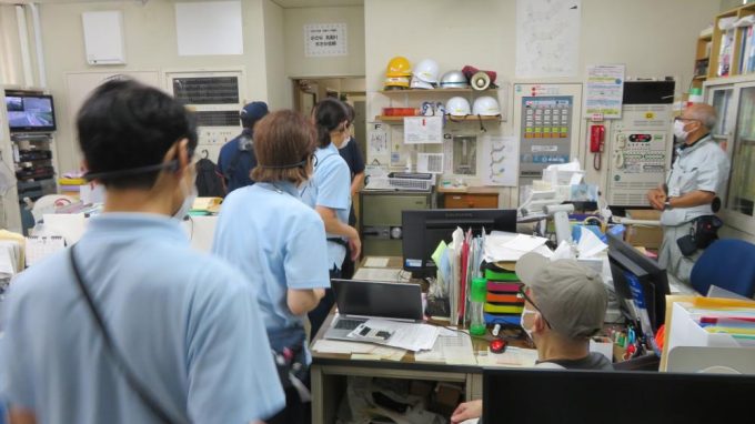 当日は防火シャッター横のくぐり戸の説明や管理栄養士さんから非常食のこと等たくさんの勉強ができました。
