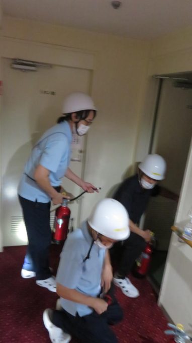 京都市北消防署ご指導の下、緊張感・臨場感あふれる訓練でした。