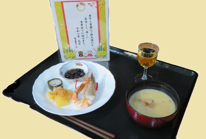 そのあと、皆で健康を記念して乾杯。お正月のお料理をいただきました。
